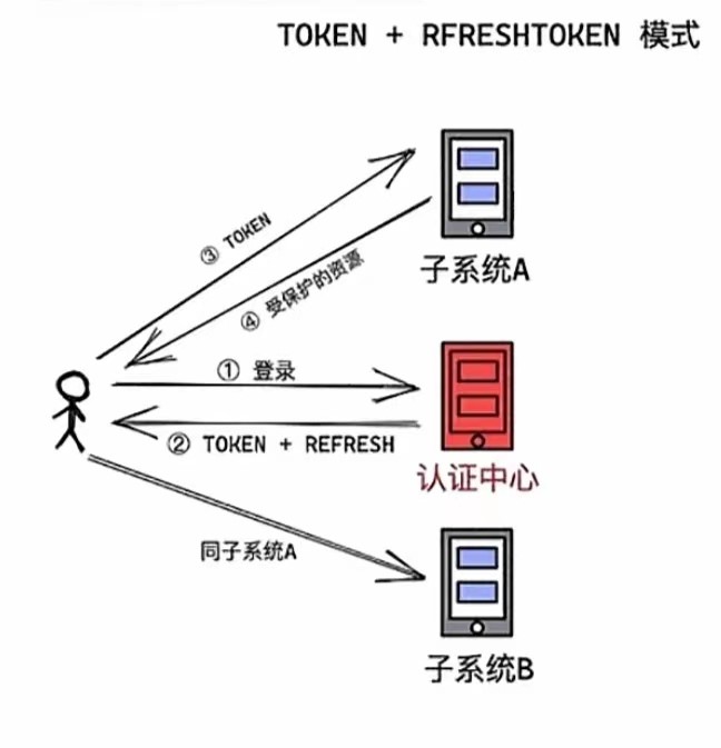 (Token 为访问子系统时所携带的,即所有子系统都认识,过期时间较短;RefreshToken 只有认证中心认识,过期时间较长)