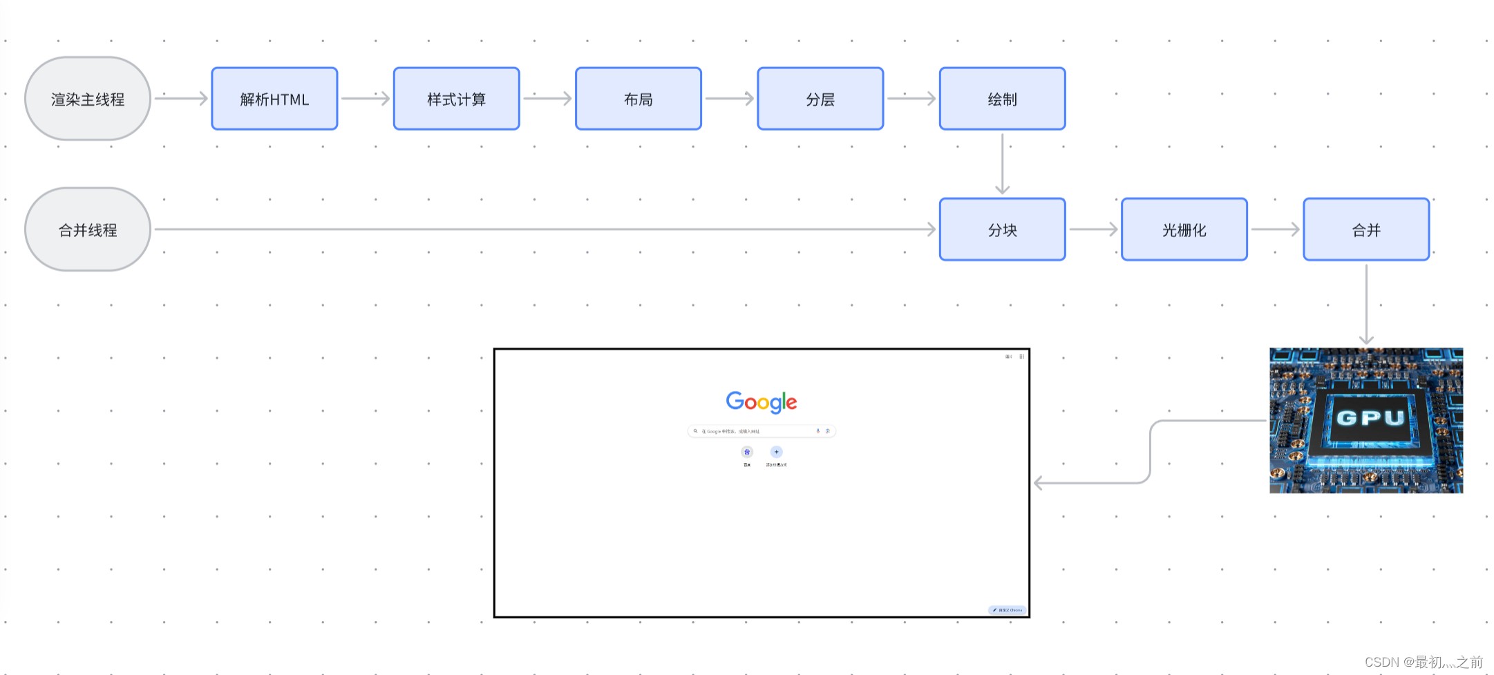 合成线程会将块信息交给 GPU 进程,以极高的速度完成光栅化