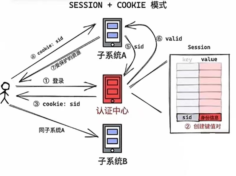 ④ 访问子系统时,把此 sid 一同带给子系统