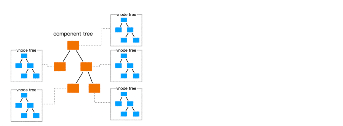 在vue中,每个组件都有一个render函数,每个render函数都会返回一个虚拟dom树,这也就意味着每个组件都对应一棵虚拟DOM树